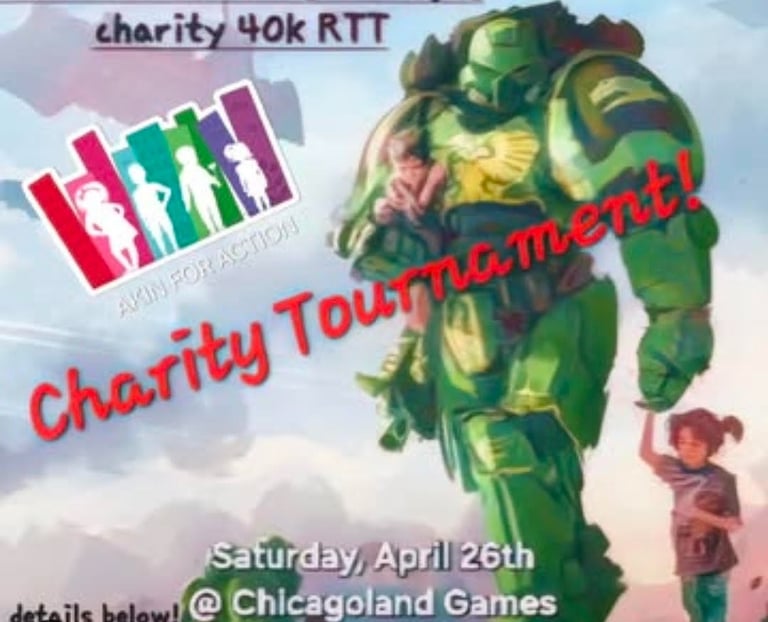Join us for a casual 3 round Warhammer 40,000 RTT Tournament. All proceeds go to the work we do at Akin For Action!Tournament is limited to 20 players, so sign up no!